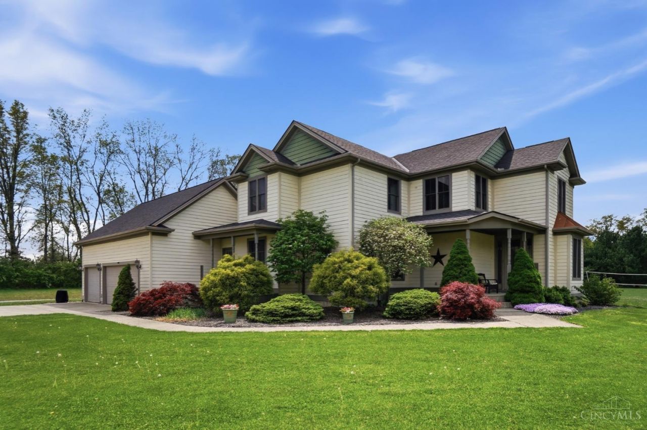 Gorgeous custom home on 2 acres in Clinton-Massie Schools! 2560 sq ft two story, 2.5 baths, 4 bedrooms that include a first floor primary en suite with walk in closet, vaulted ceiling, double vanity, shower and soaking tub. Fully remodeled kitchen (2017) is open to family room, has SS appliances, granite counters, island w/oven/range & microwave, tall cabinetry, quick access to mud room/entry beverage center & bar. Family room w/built in bookshelves, gas fireplace, & walkout to salt water in ground pool! The pool area is well designed w/covered patio/deck perfect for watching tv or morning coffee, plus concrete pool deck is ample enough...read more